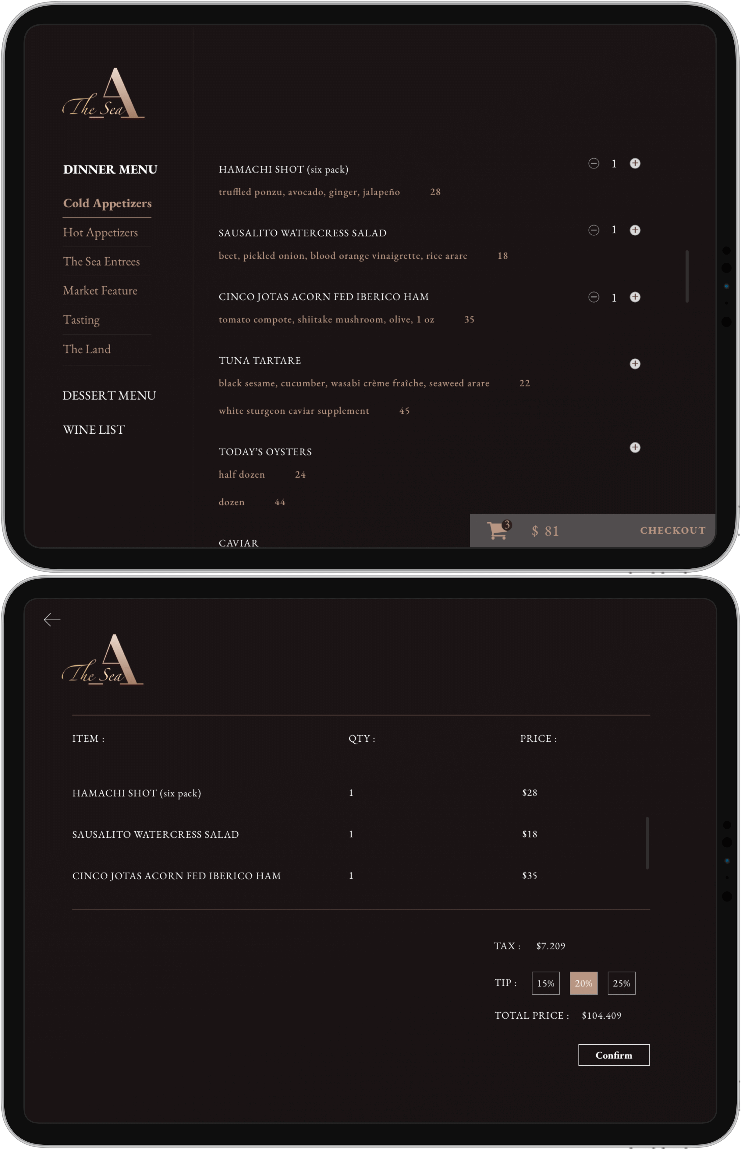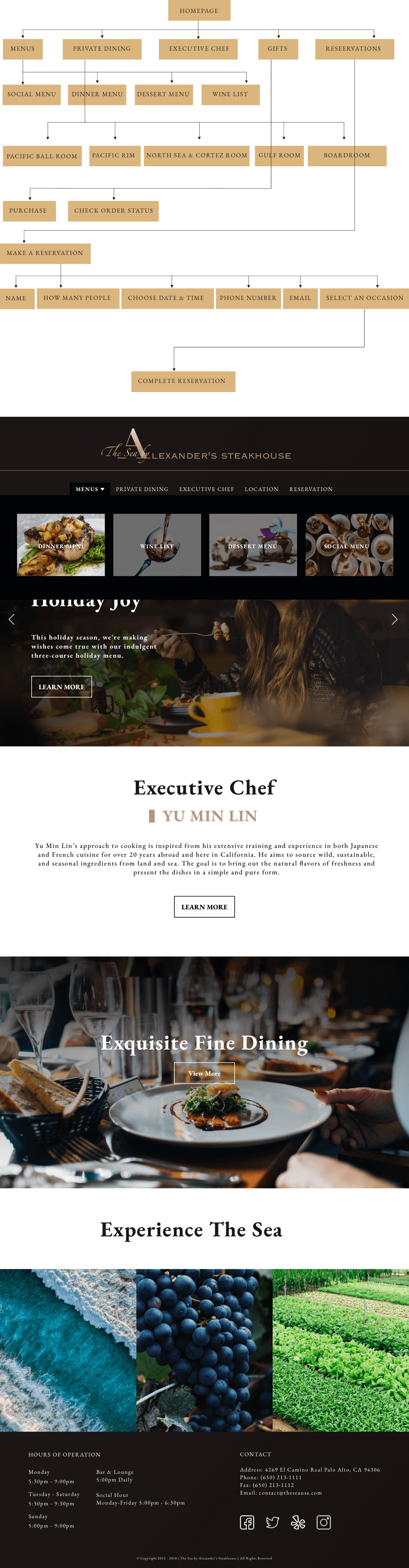 The sea by alexander's steakhouse is a high-end restaurant for San Francisco local foodie to get decent steak and seafood. In the rebranding project, I am designing new logos, brand collateral, interactive menus and website. Come up with the new brand color that can reflect the value of the high-class restaurant. A simple and elegant style that makes foodie people want to explore this restaurant. Create an iPad menu that enables customers to order their foods interactively. Create a website where customers can view menus and reserve their meals in advance.
