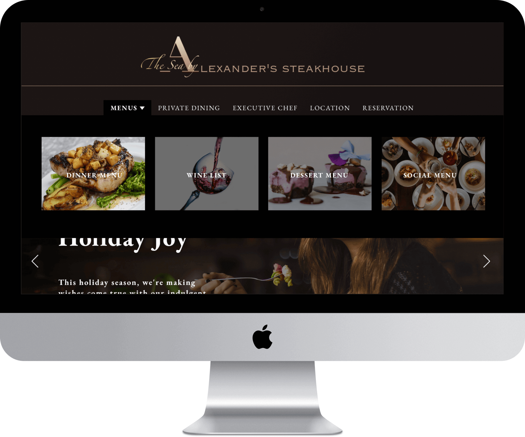 The logo does not reflect its own brand identity. It's more like a SPA or a tech company logo. The sea by alexander steakhouse is a high-end restaurant. The color palette, typography, and the overall visual design of the current website not aligned with their high-end branding. The menu is not easy to read at a glance even though there are only a few items. An upgrade on their visual identity will elevate them to the next level.
